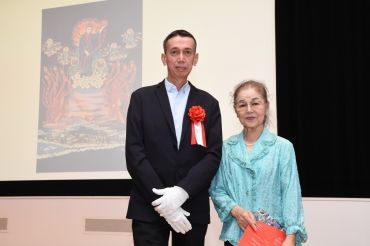 Enfin, comme tous les ans, une urne de collecte a été installée à l’entrée de la salle d’exposition dans le cadre du Projet visant à acheter des fournitures d’art aux enfants amateurs de peinture de la ville de Rikuzentakata. Ce projet, à vocation caritative, soutient les sinistrés du séisme de 2011 sur la côte Pacifique du Tōhoku. Grâce à un don de 45.400 yens, 500 cahiers de dessin ont pu être distribués aux crèches municipales par l’intermédiaire de l’Association des garderies d’enfants de la ville de Rikuzentakata.