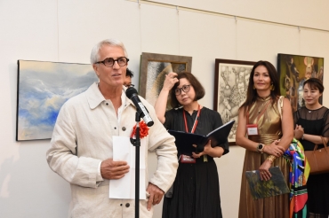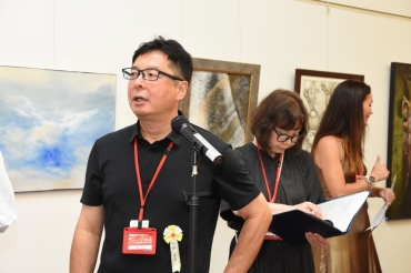 La cérémonie d’ouverture a été saluée par Madame Frédérique Penilla, conseillère culturelle adjointe, Directrice générale adjointe de l’Ambassade de France / l’Institut français du Japon, ainsi que par Madame Kaori Shiotsu, Directrice adjointe, Première direction européenne, Bureau des Affaires européennes, Ministère des Affaires étrangères, qui ont toutes deux accordé leur patronage à cette exposition. Monsieur Jean-Marie Zacchi, Président d’honneur de l’Art Actuel France-Japon, n’a malheureusement pas pu se rendre sur place, mais depuis la Corse, sa région natale, son amie peintre, Madame Carina Simoni, a transmis aux participants un message de sa part.