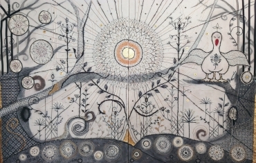 五島 アサミ 「サムサラの森/太陽の暗号」テキスタイルアート 116.7×182.0