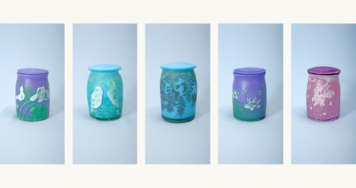 保田 昌子 「清純」ガラスにサンドブラスト 11.0×11.0×18.5 他全5点