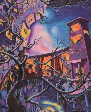 早川 ふみ代 「南の島のカオス」油彩 72.7×60.6