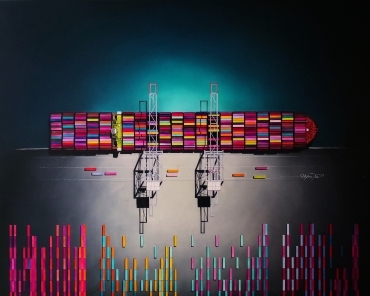 パドゥ ステファン(仏) 「シッピング」油彩 84.0×103.0
