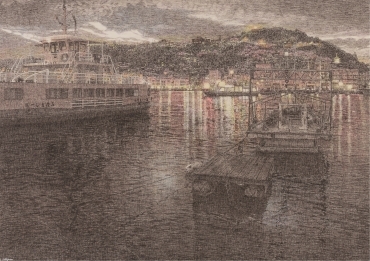 外山 昇 「尾道水道夜景」ペン画、Gペン、丸ペン 71.0×101.5