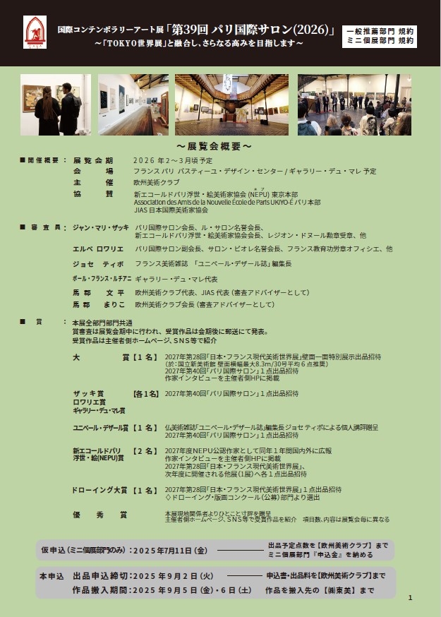 第39回 パリ国際サロン(推薦展)2026